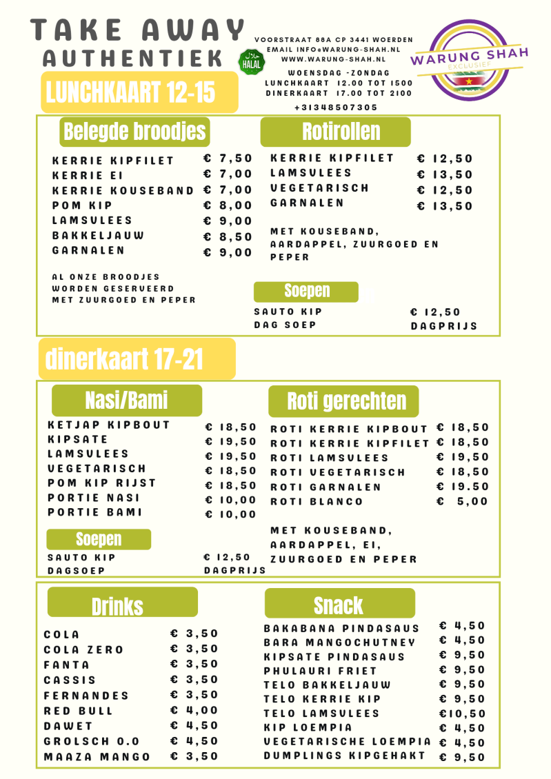 Voor Lunch & take-away kun je bij ons terecht van 12:00 tot 15:00 uur